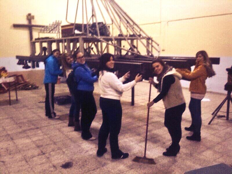 Hace unos instantes algunas Cofrades de la Hermandad de Nuestro Padre Jesús en su Entrada Triunfal y Nuestra Señora Madre de Dios de la Palma compartían en nuestro blog esta foto donde se las ve finalizando los últimos detalles del trono para el comienzo de sus ensayos con gran ilusión y sobre todo con un precioso ambiente de Hermandad.