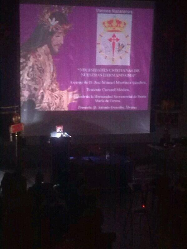 En la noche de ayer se celebró la segunda conferencia de Viernes Nazarenos, "Necesidades Cristianas de nuestras Hermandades", a cargo de D. José Manuel Martínez Sánchez, Teniente Coronel Médico, Presidente de la Hermandad Sacramental de Santa María de Utrera, quien fue presentado por D. Antonio González Álvarez.